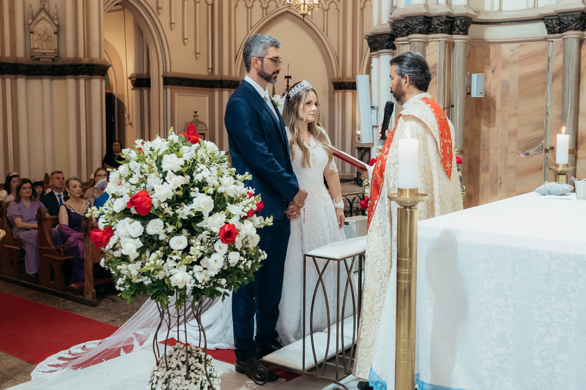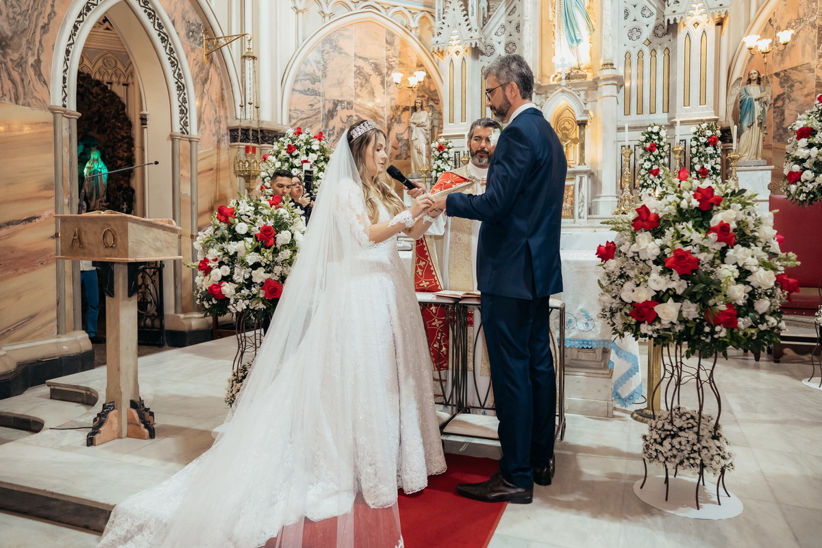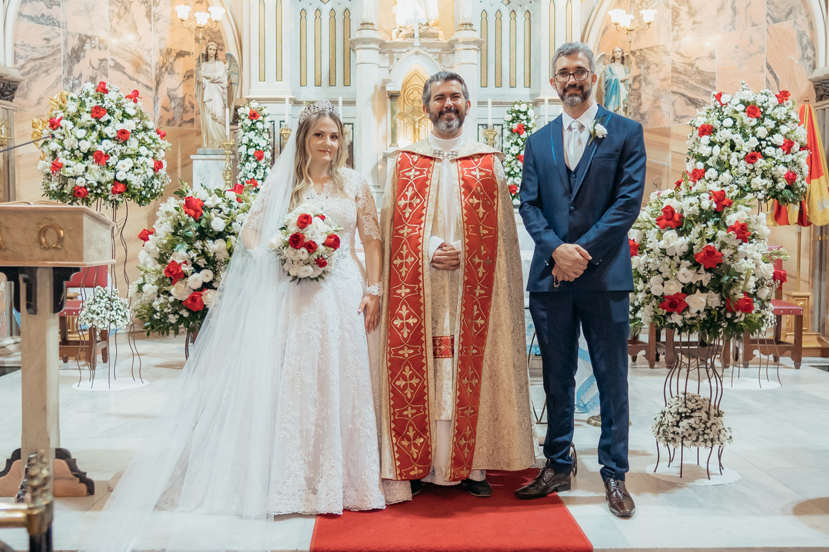 O casamento de Maria Cecília e Vinícius aconteceu na deslumbrante Basílica Nossa Senhora de Lourdes, em Belo Horizonte, um dos cenários mais clássicos e elegantes para cerimônias religiosas.