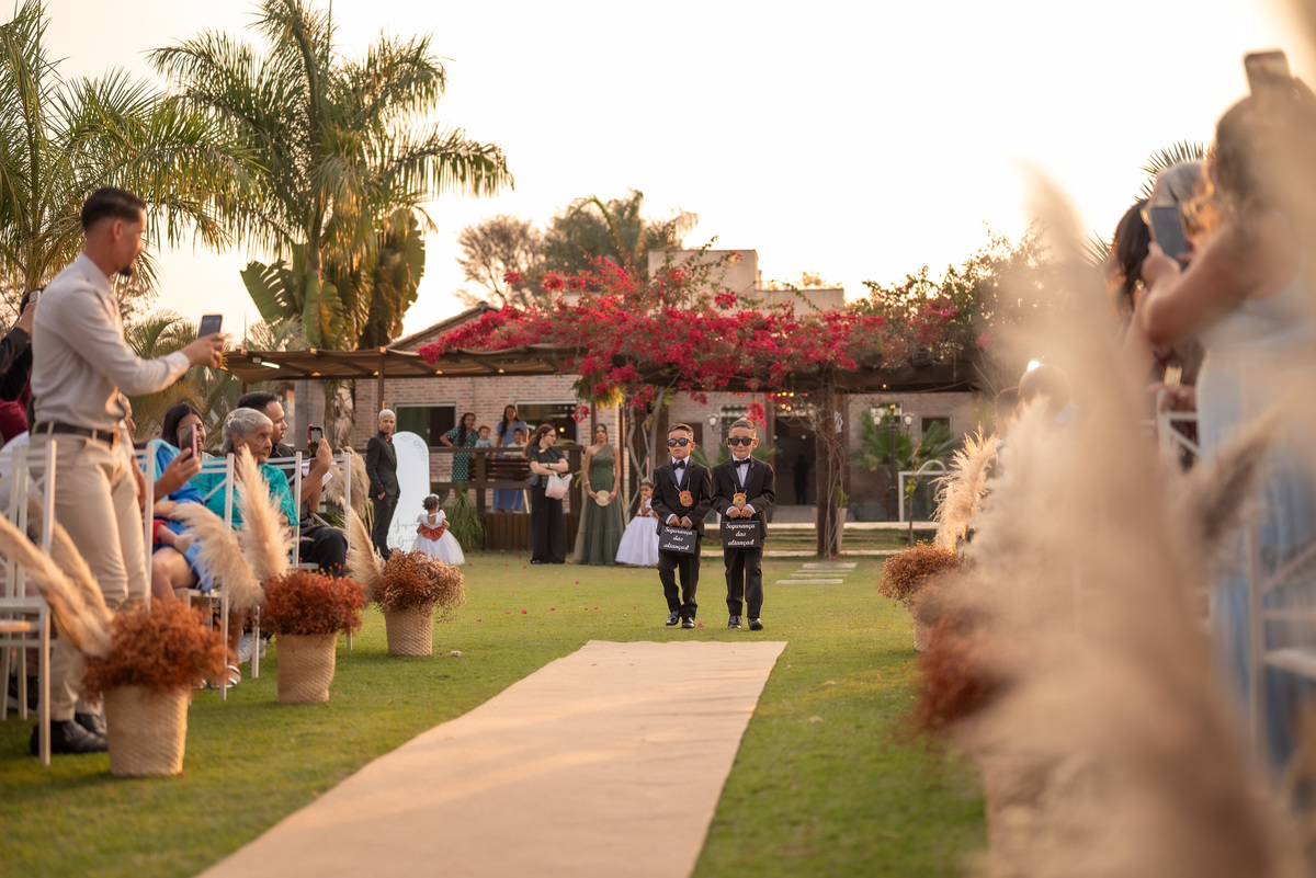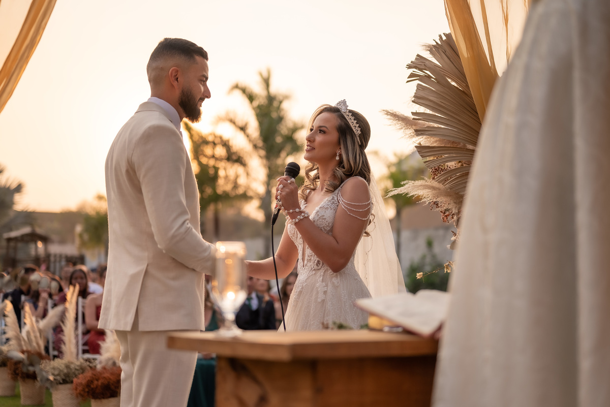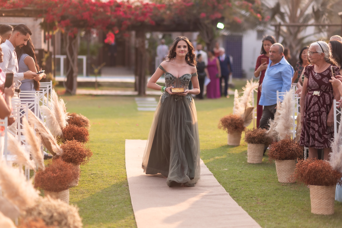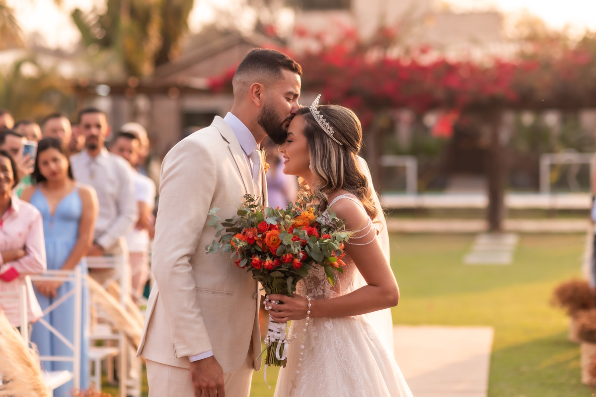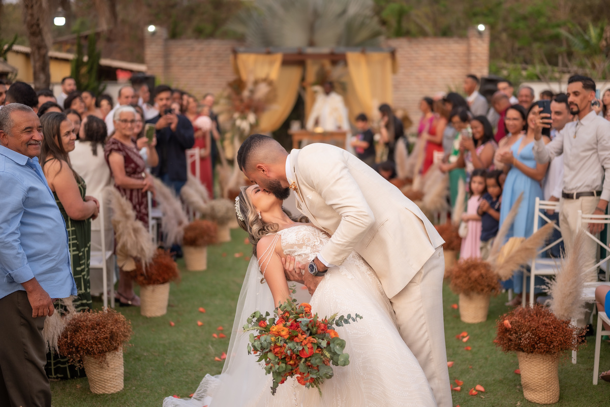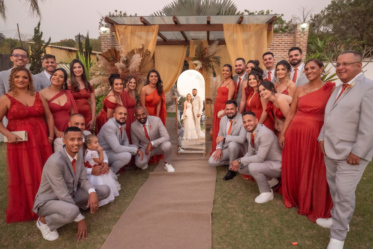 A cerimônia contou com a presença de amigos e familiares, criando um clima de emoção e felicidade do início ao fim. O pôr do sol no Espaço Araújo deu um toque mágico às fotos do casal, que aproveitaram todos os cantinhos do local para registrar esse momento especial.