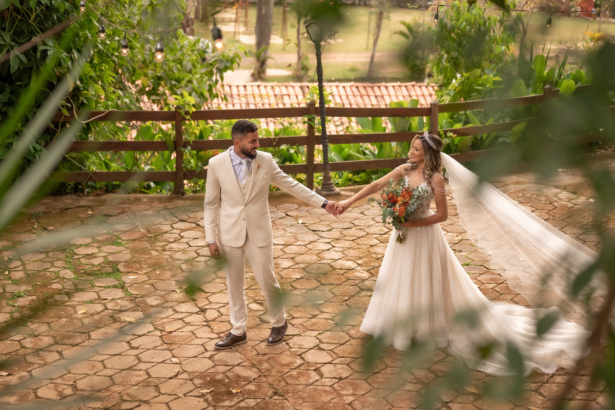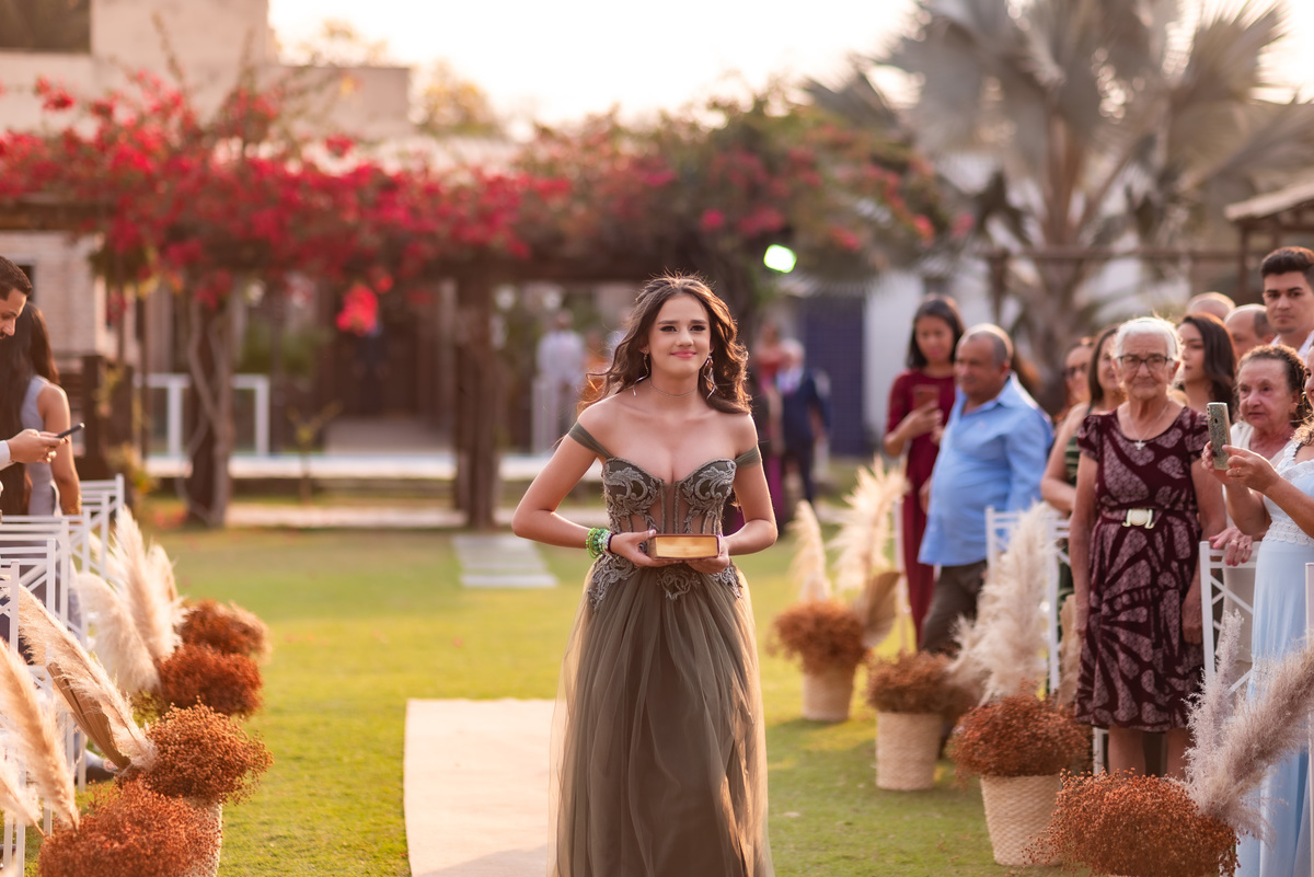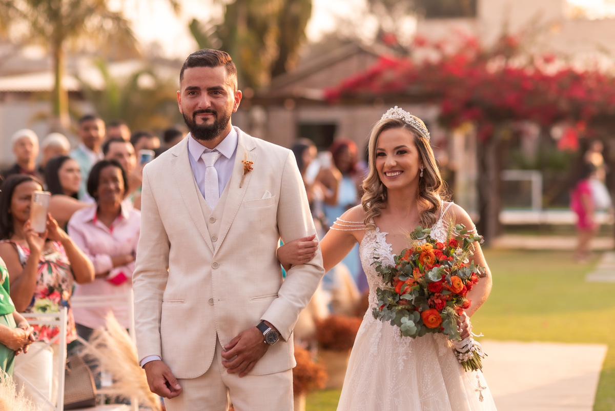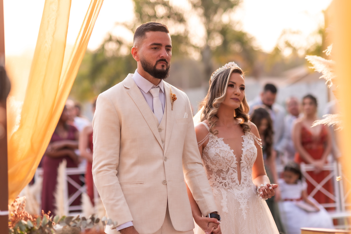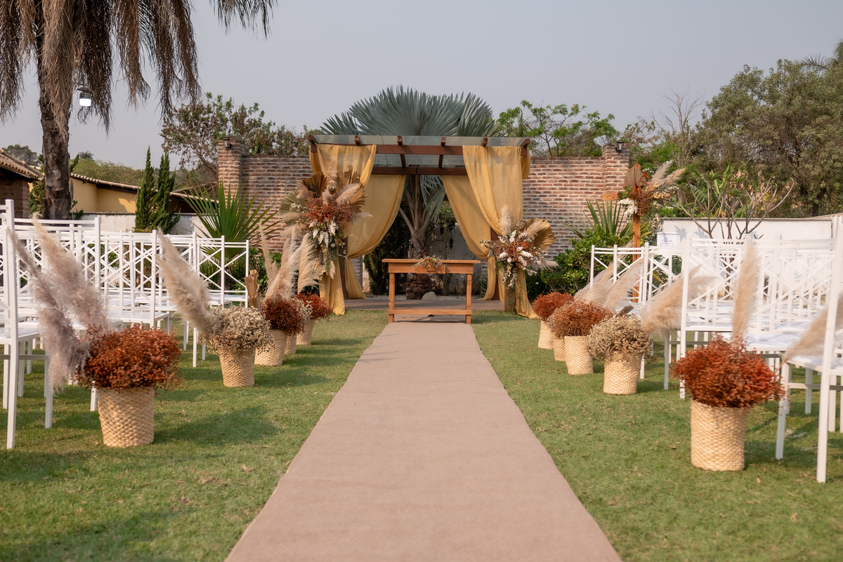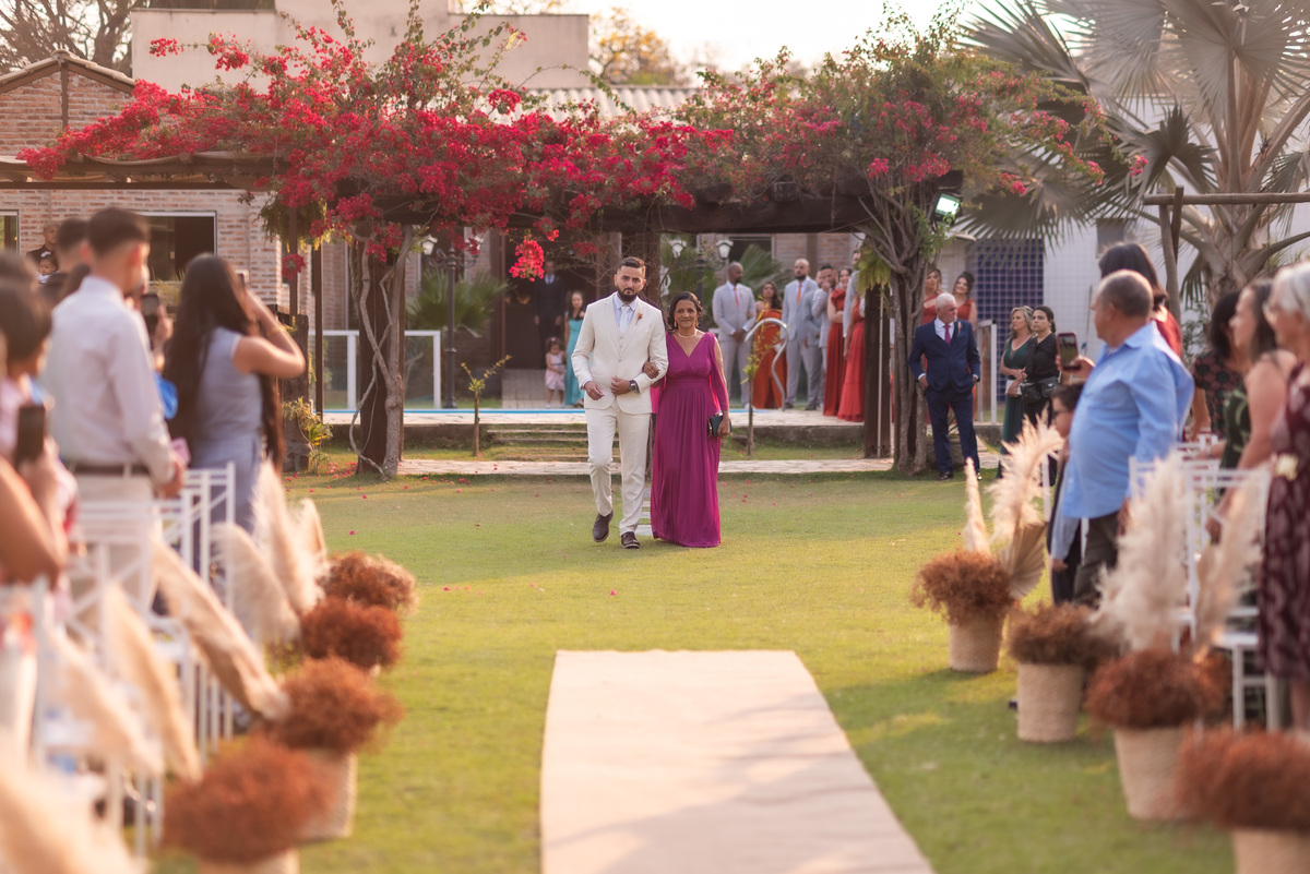 A cerimônia contou com a presença de amigos e familiares, criando um clima de emoção e felicidade do início ao fim. O pôr do sol no Espaço Araújo deu um toque mágico às fotos do casal, que aproveitaram todos os cantinhos do local para registrar esse momento especial.