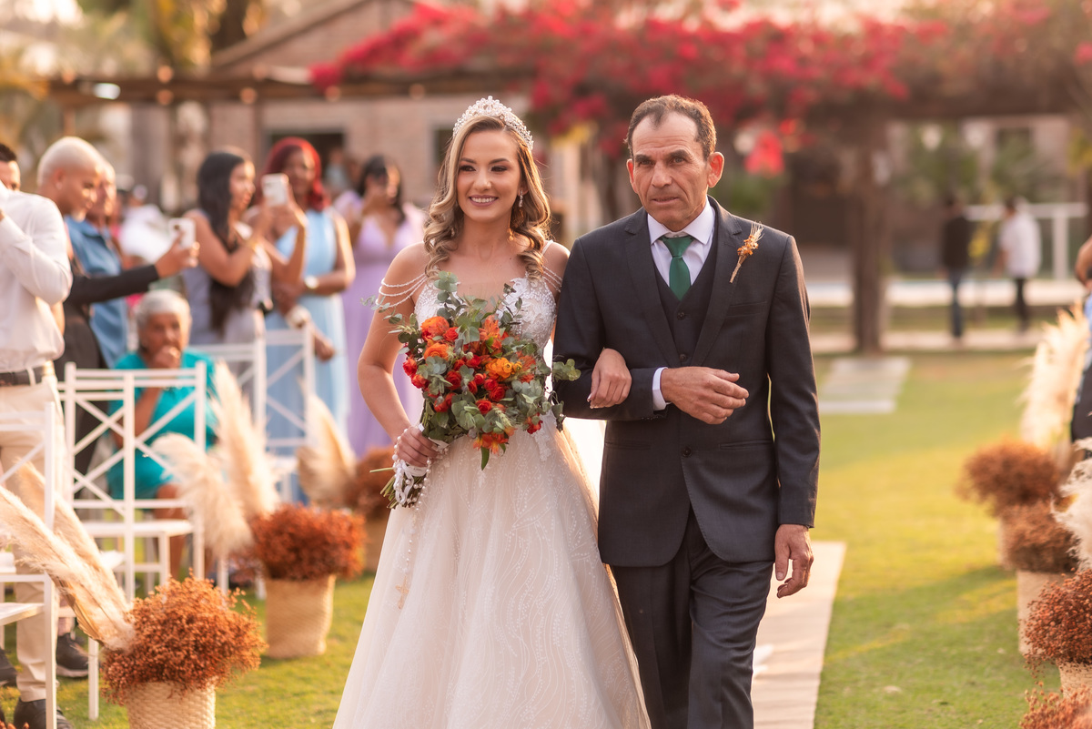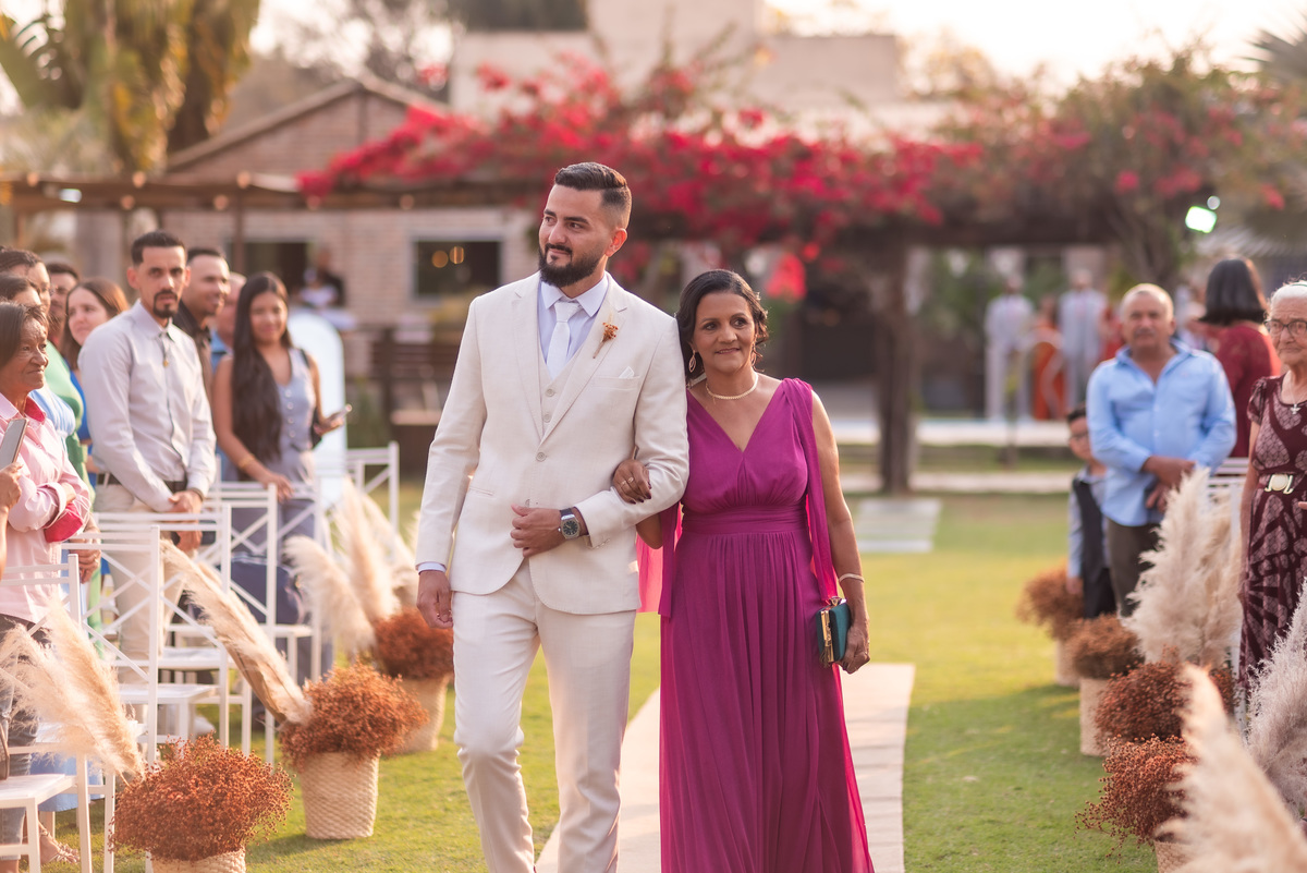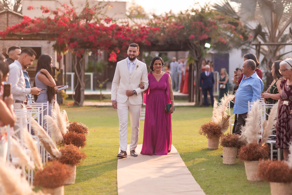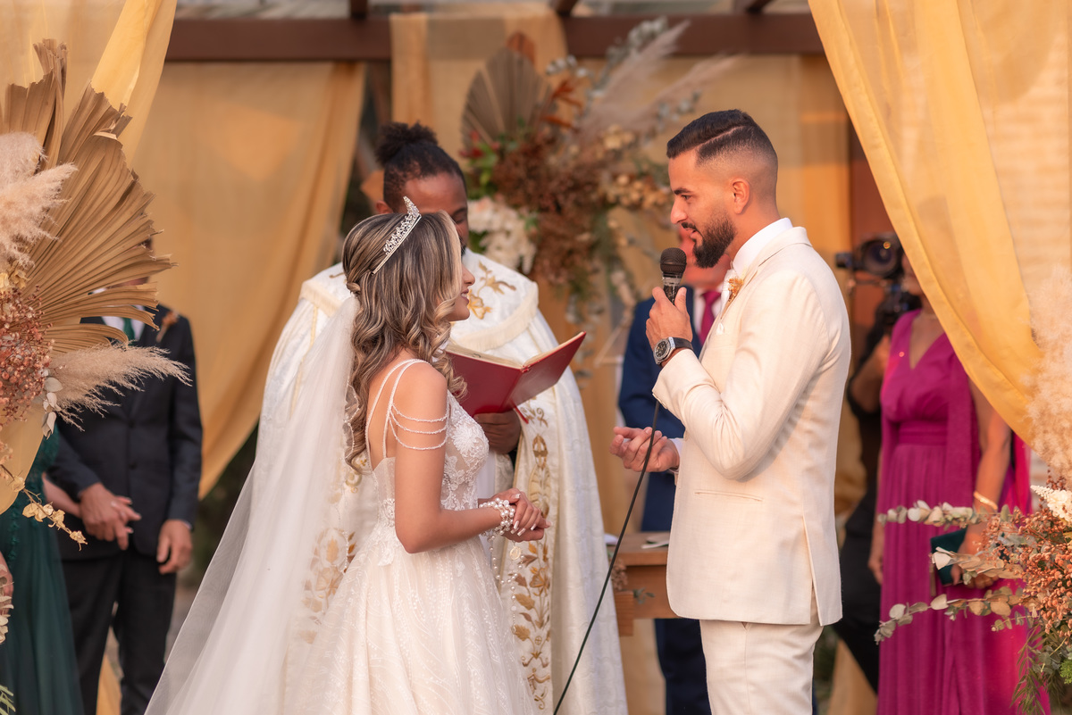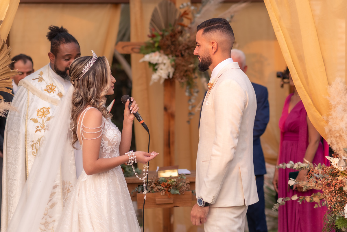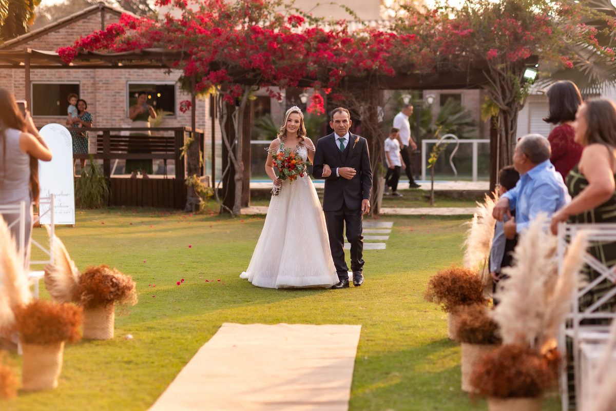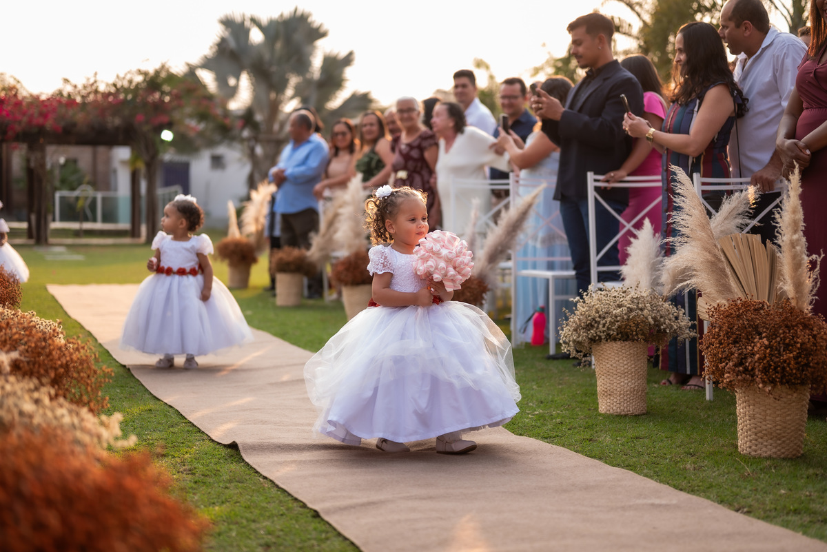 A cerimônia contou com a presença de amigos e familiares, criando um clima de emoção e felicidade do início ao fim. O pôr do sol no Espaço Araújo deu um toque mágico às fotos do casal, que aproveitaram todos os cantinhos do local para registrar esse momento especial.