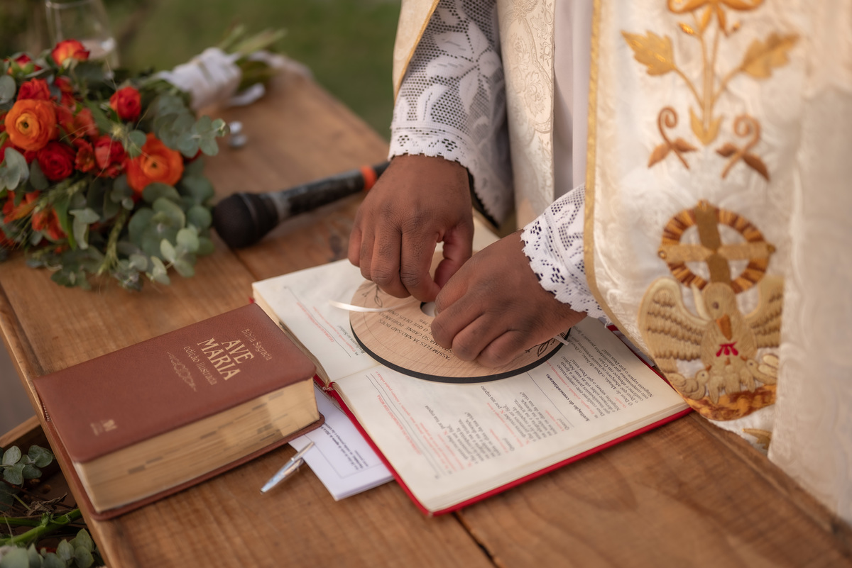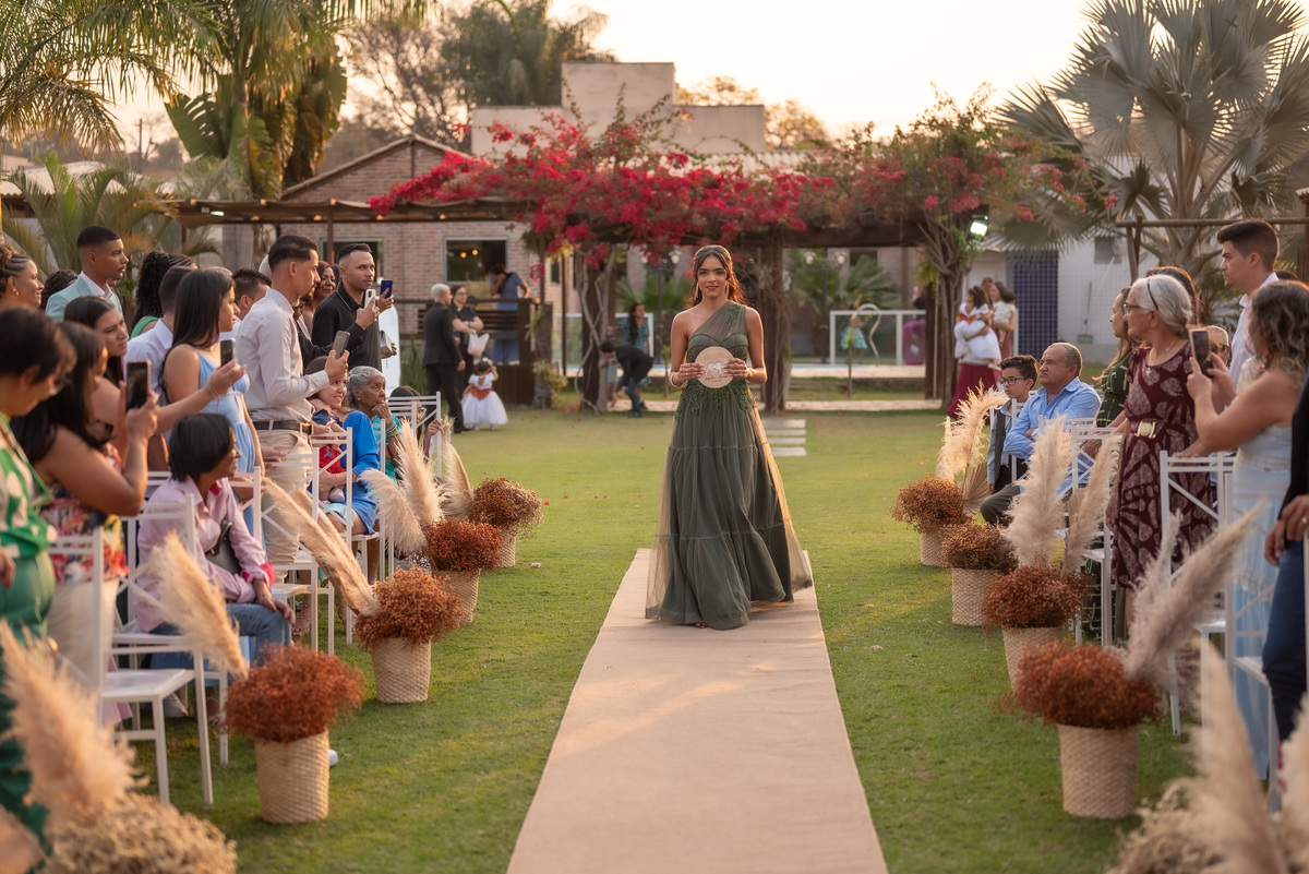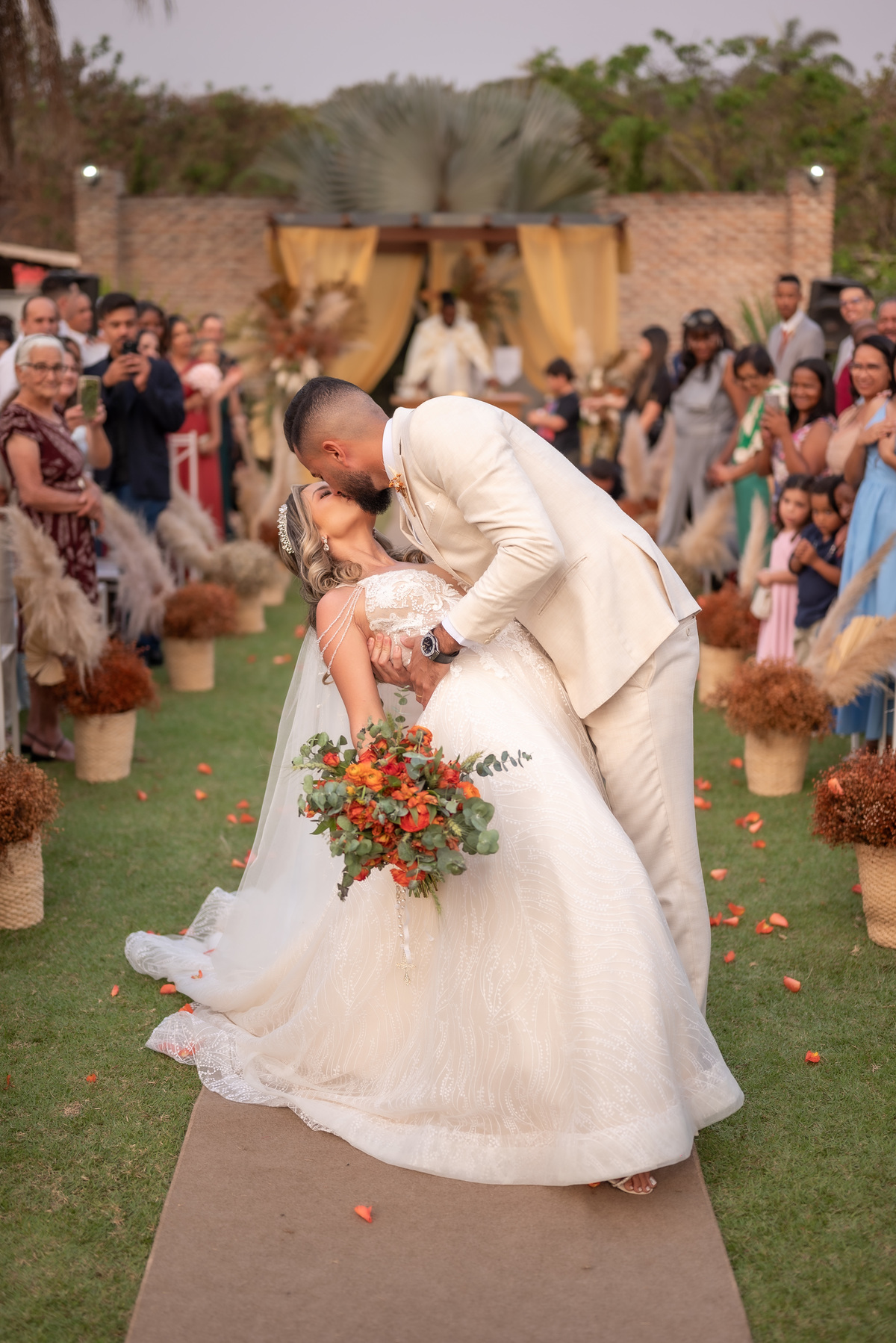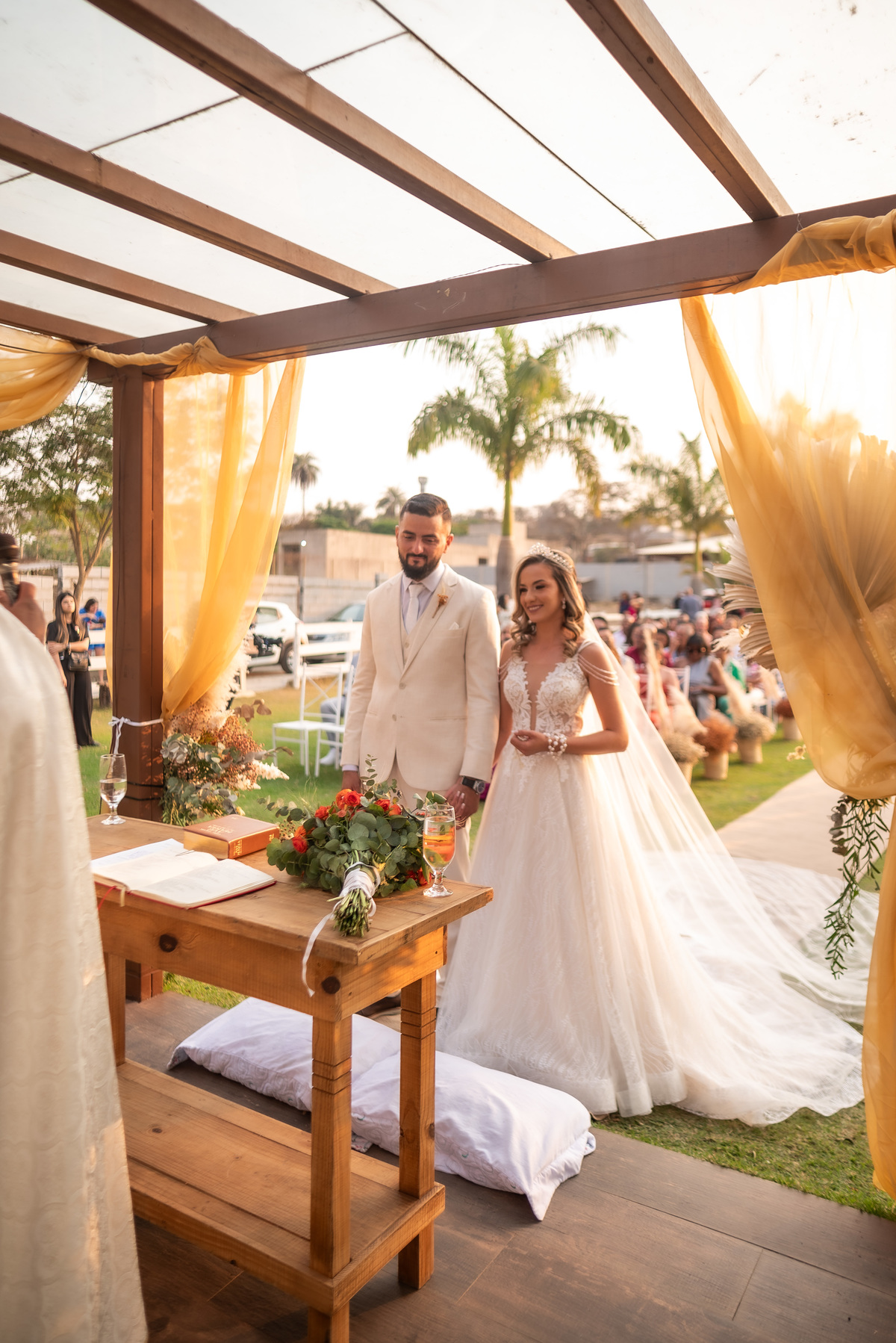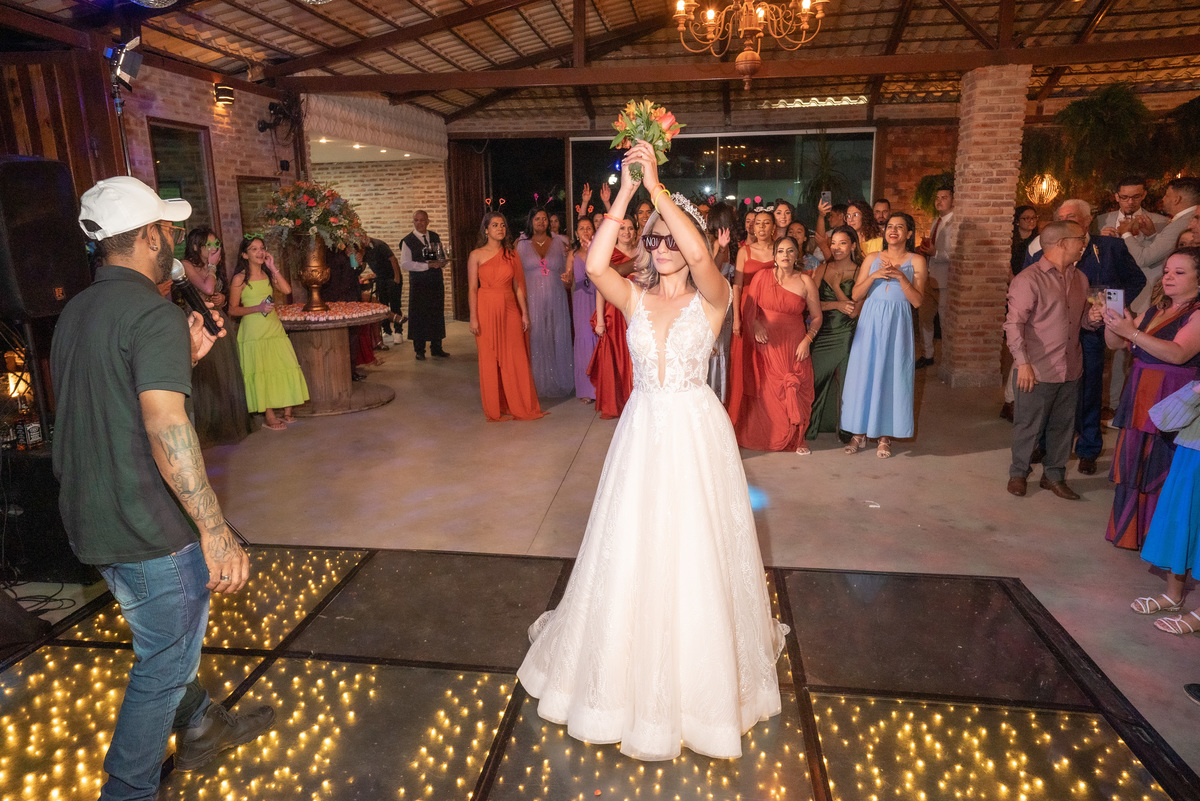 A cerimônia contou com a presença de amigos e familiares, criando um clima de emoção e felicidade do início ao fim. O pôr do sol no Espaço Araújo deu um toque mágico às fotos do casal, que aproveitaram todos os cantinhos do local para registrar esse momento especial.
