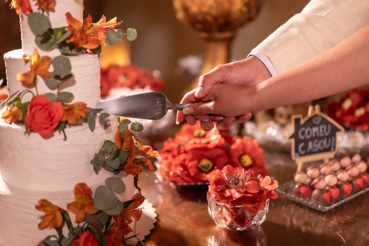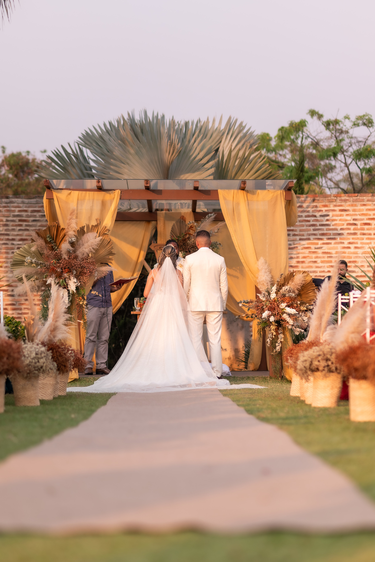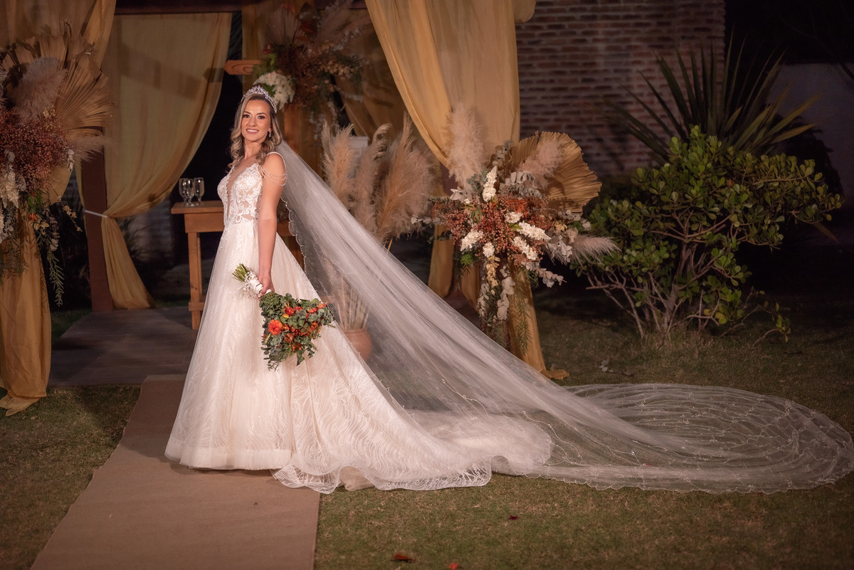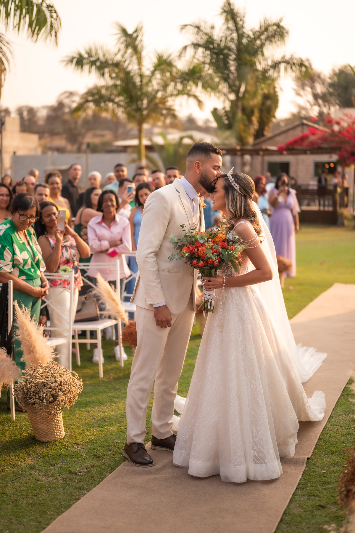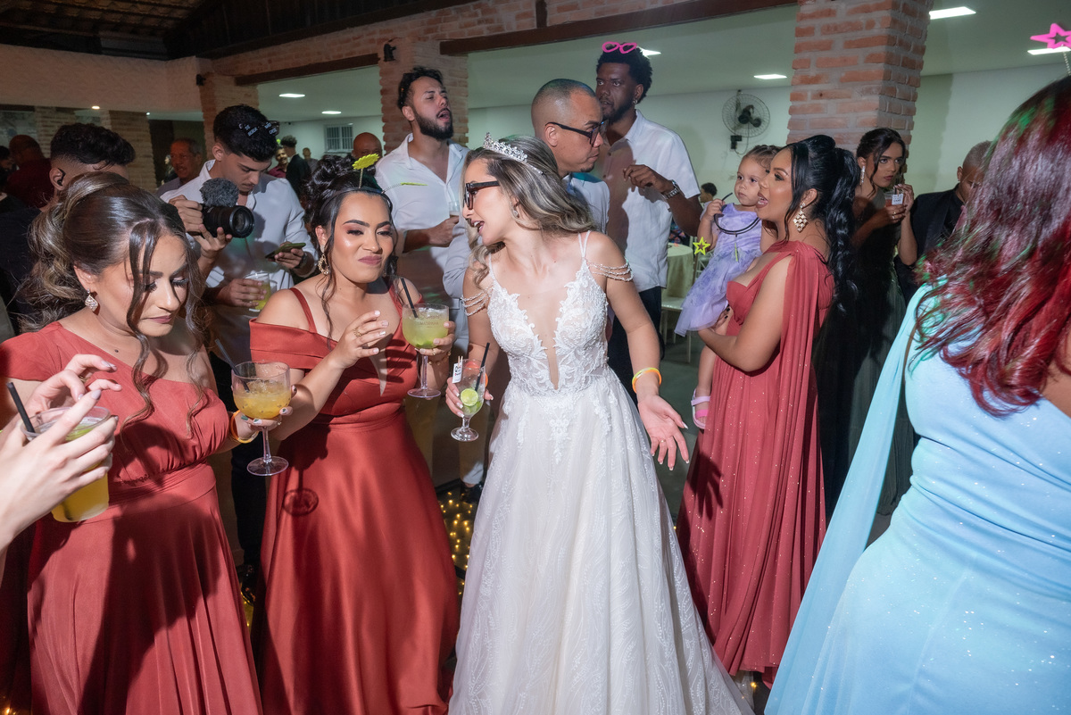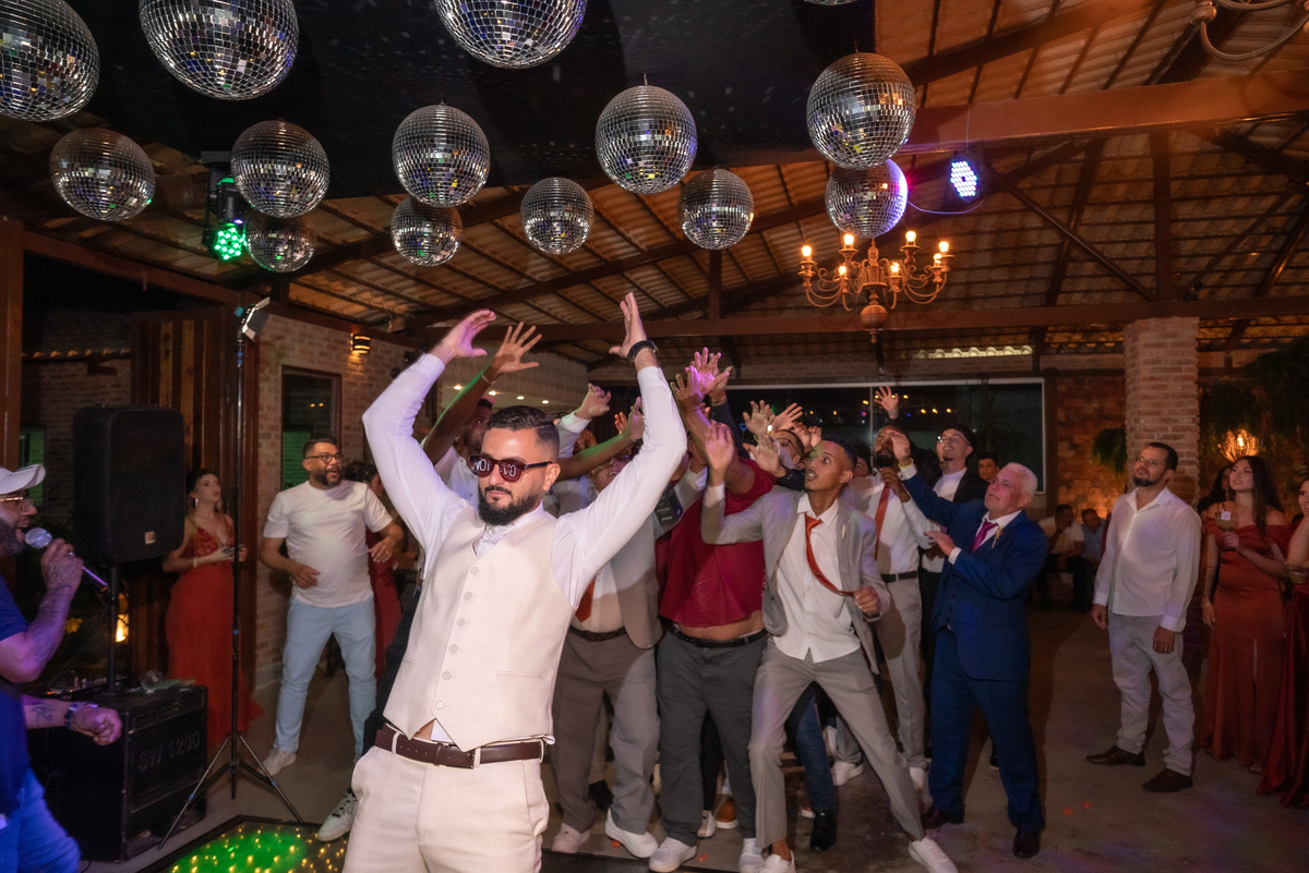 A cerimônia contou com a presença de amigos e familiares, criando um clima de emoção e felicidade do início ao fim. O pôr do sol no Espaço Araújo deu um toque mágico às fotos do casal, que aproveitaram todos os cantinhos do local para registrar esse momento especial.