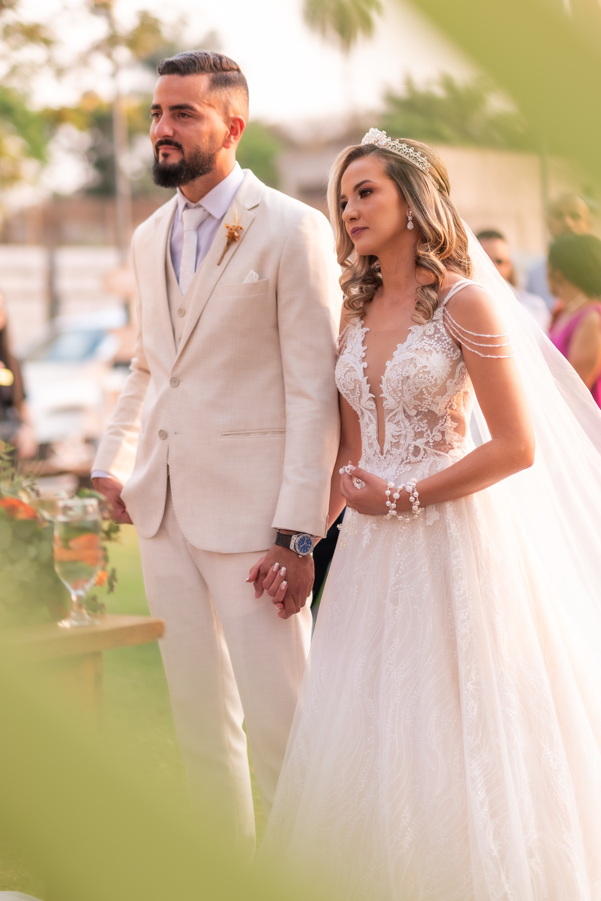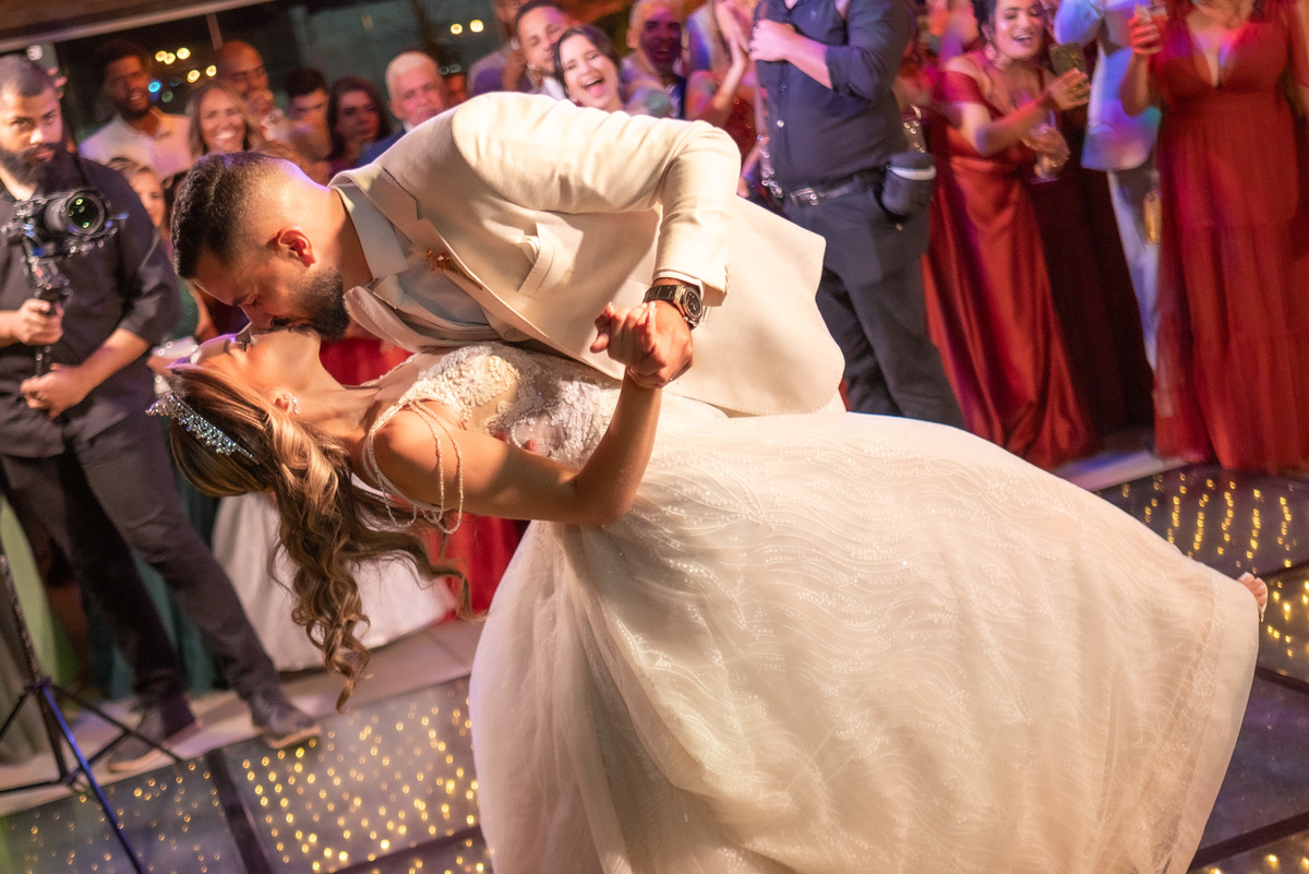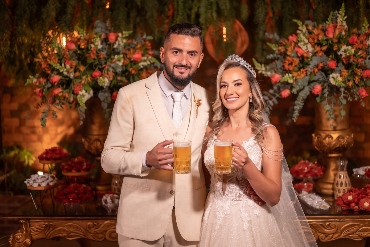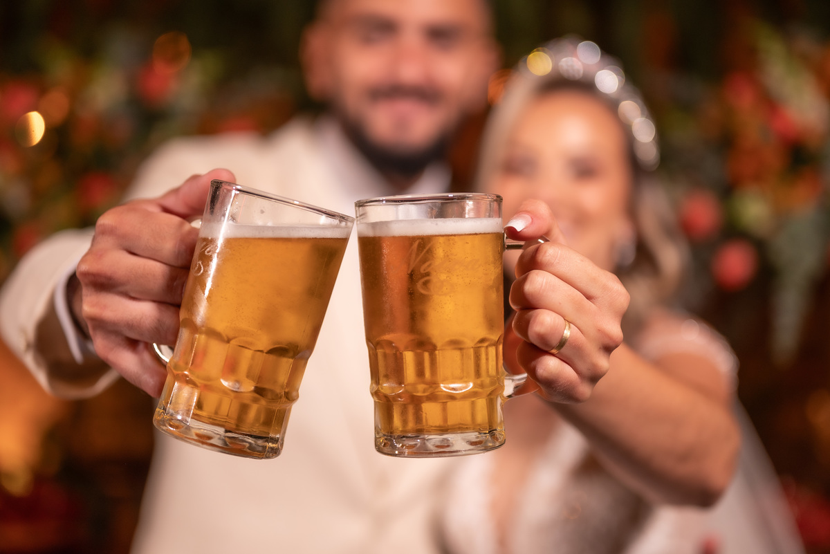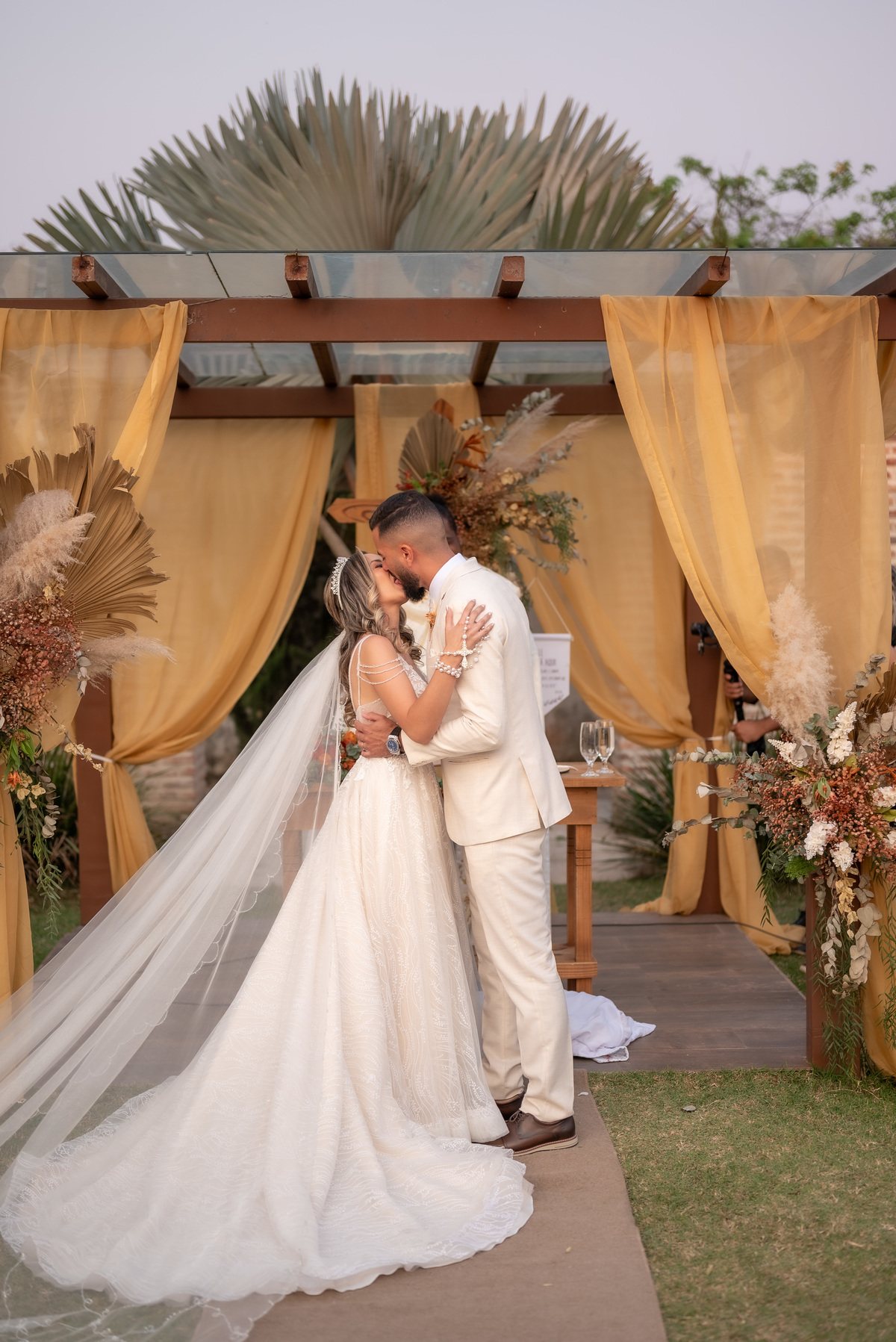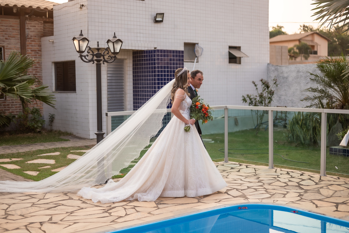 A cerimônia contou com a presença de amigos e familiares, criando um clima de emoção e felicidade do início ao fim. O pôr do sol no Espaço Araújo deu um toque mágico às fotos do casal, que aproveitaram todos os cantinhos do local para registrar esse momento especial.