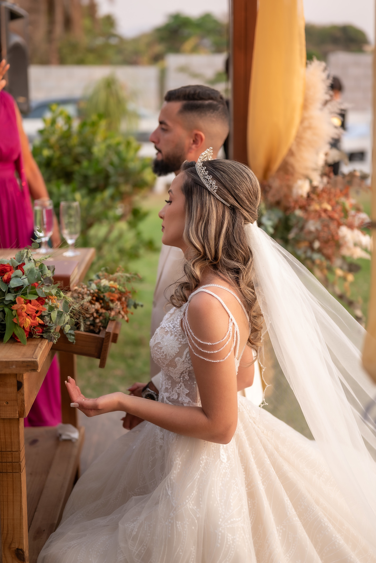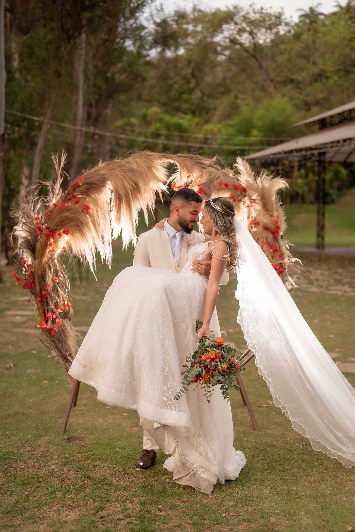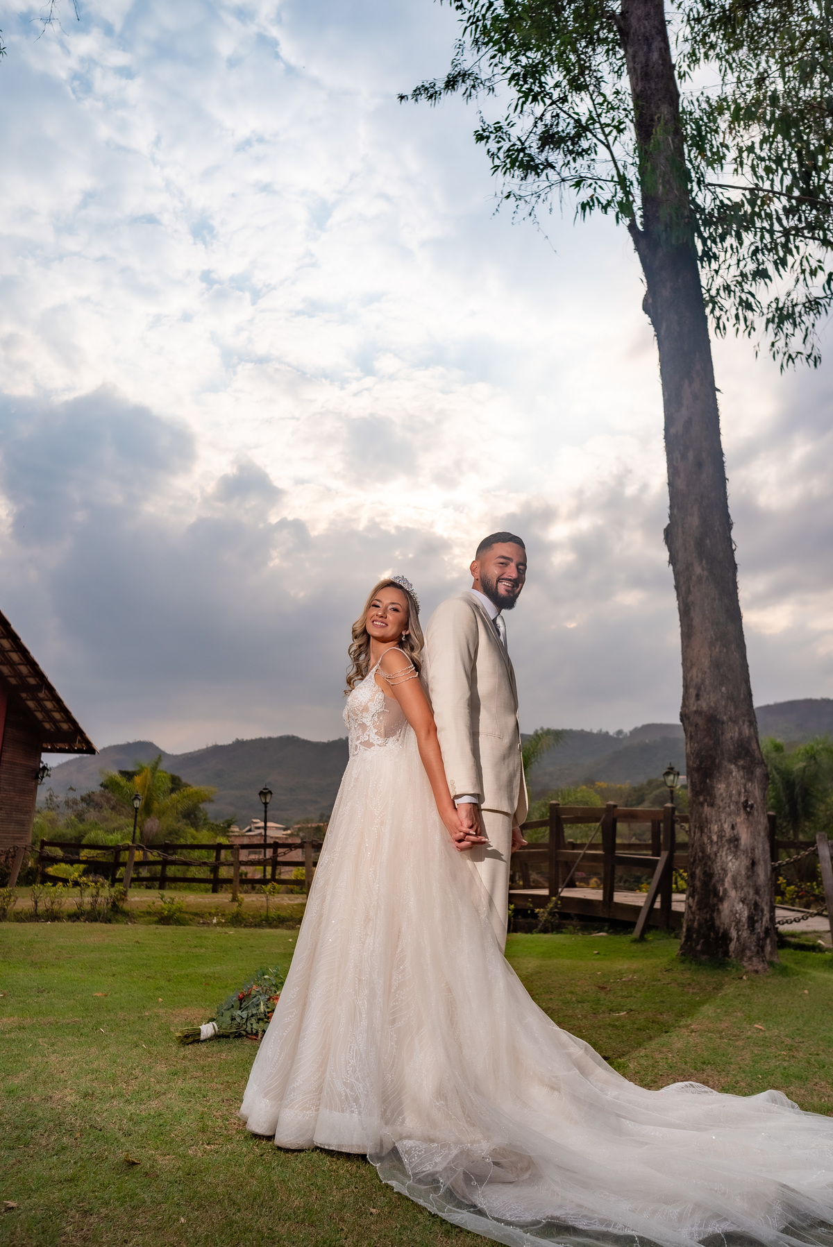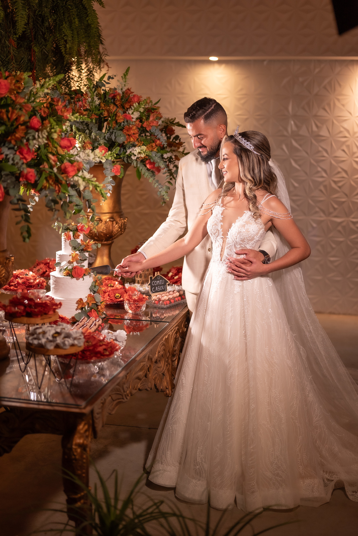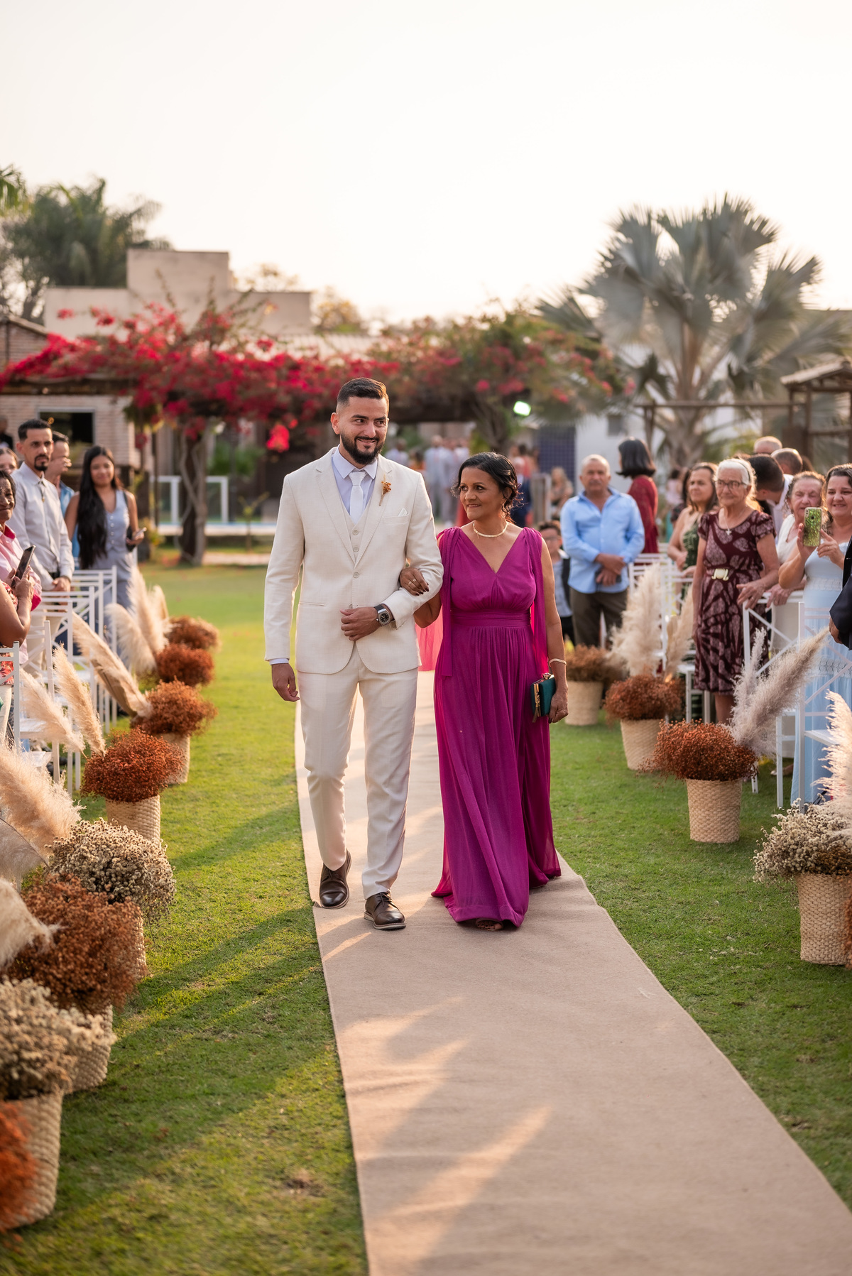 A cerimônia contou com a presença de amigos e familiares, criando um clima de emoção e felicidade do início ao fim. O pôr do sol no Espaço Araújo deu um toque mágico às fotos do casal, que aproveitaram todos os cantinhos do local para registrar esse momento especial.