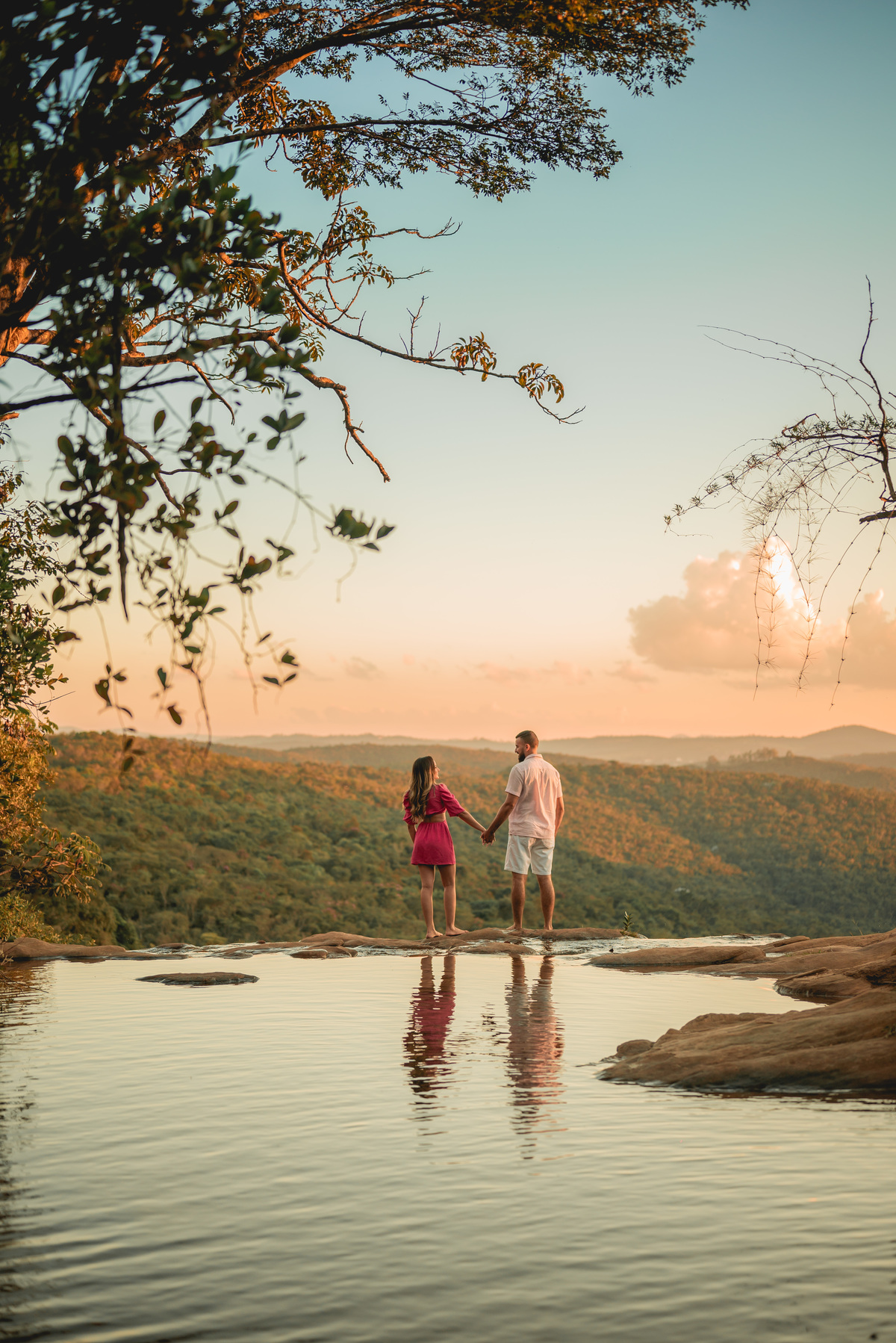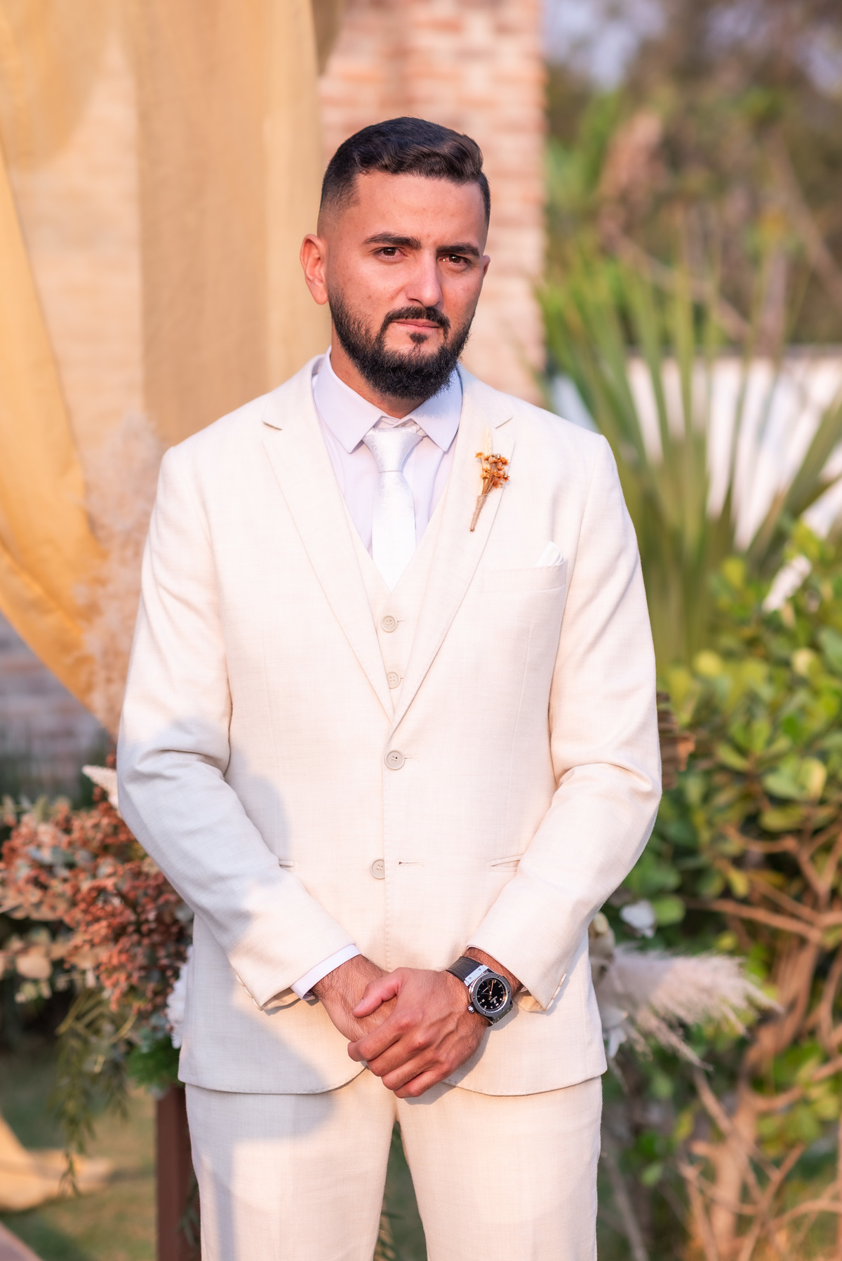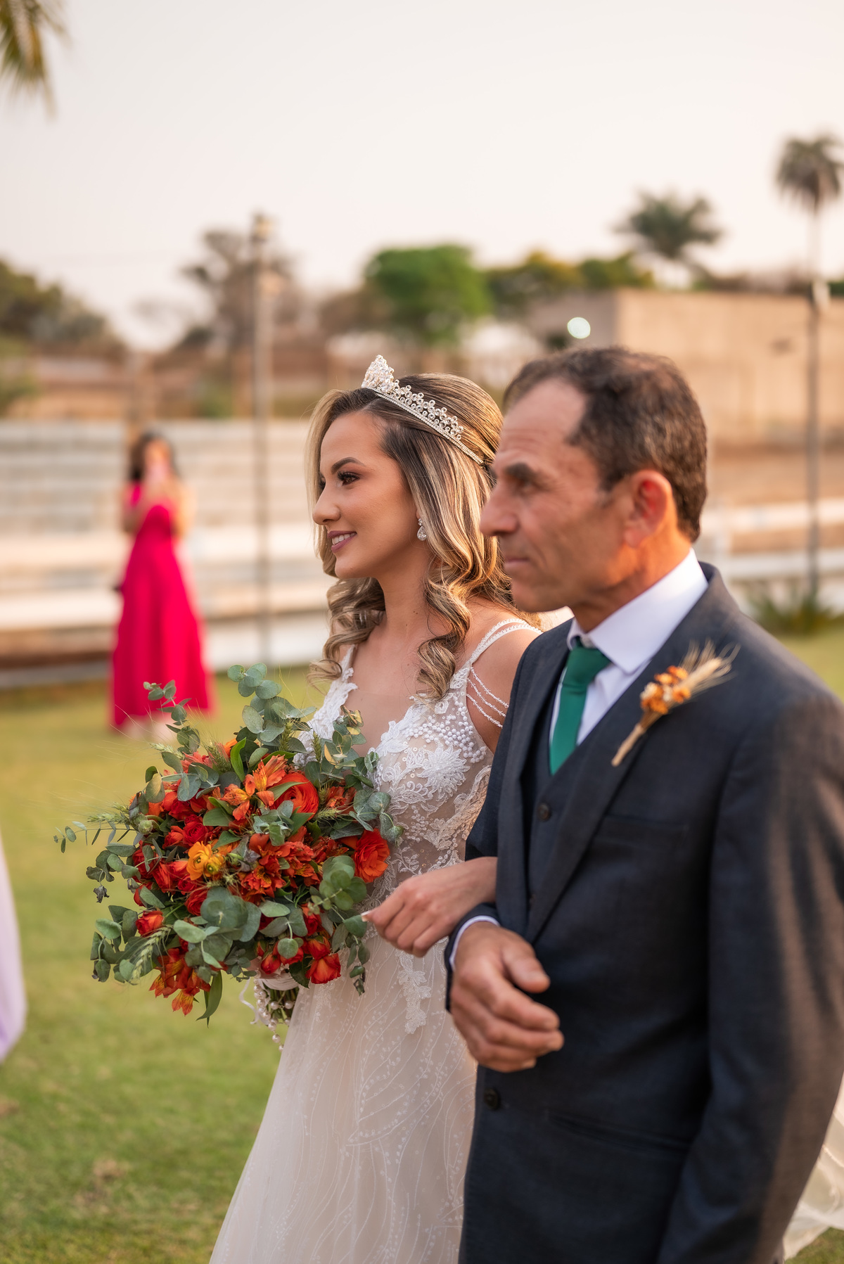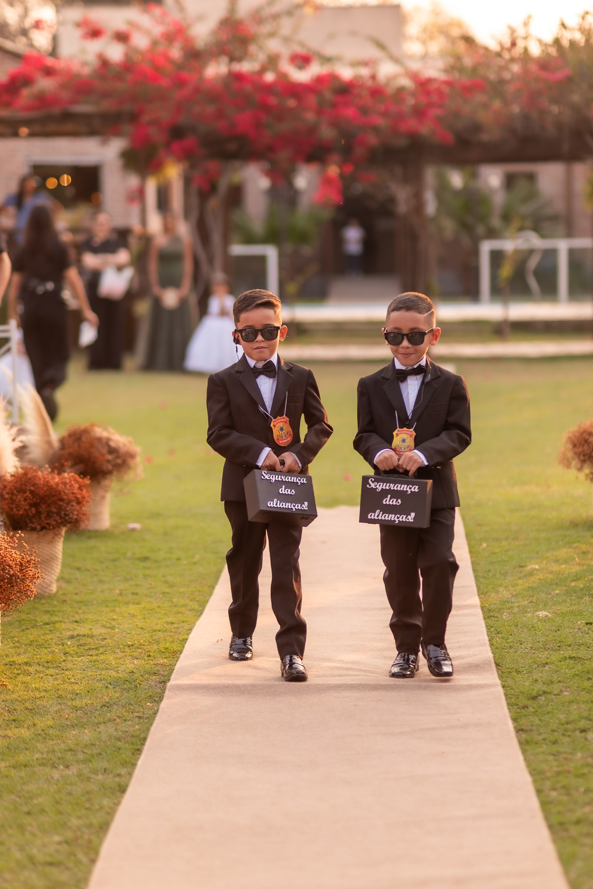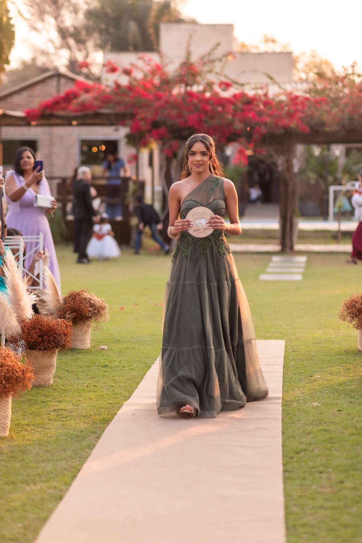 A cerimônia contou com a presença de amigos e familiares, criando um clima de emoção e felicidade do início ao fim. O pôr do sol no Espaço Araújo deu um toque mágico às fotos do casal, que aproveitaram todos os cantinhos do local para registrar esse momento especial.