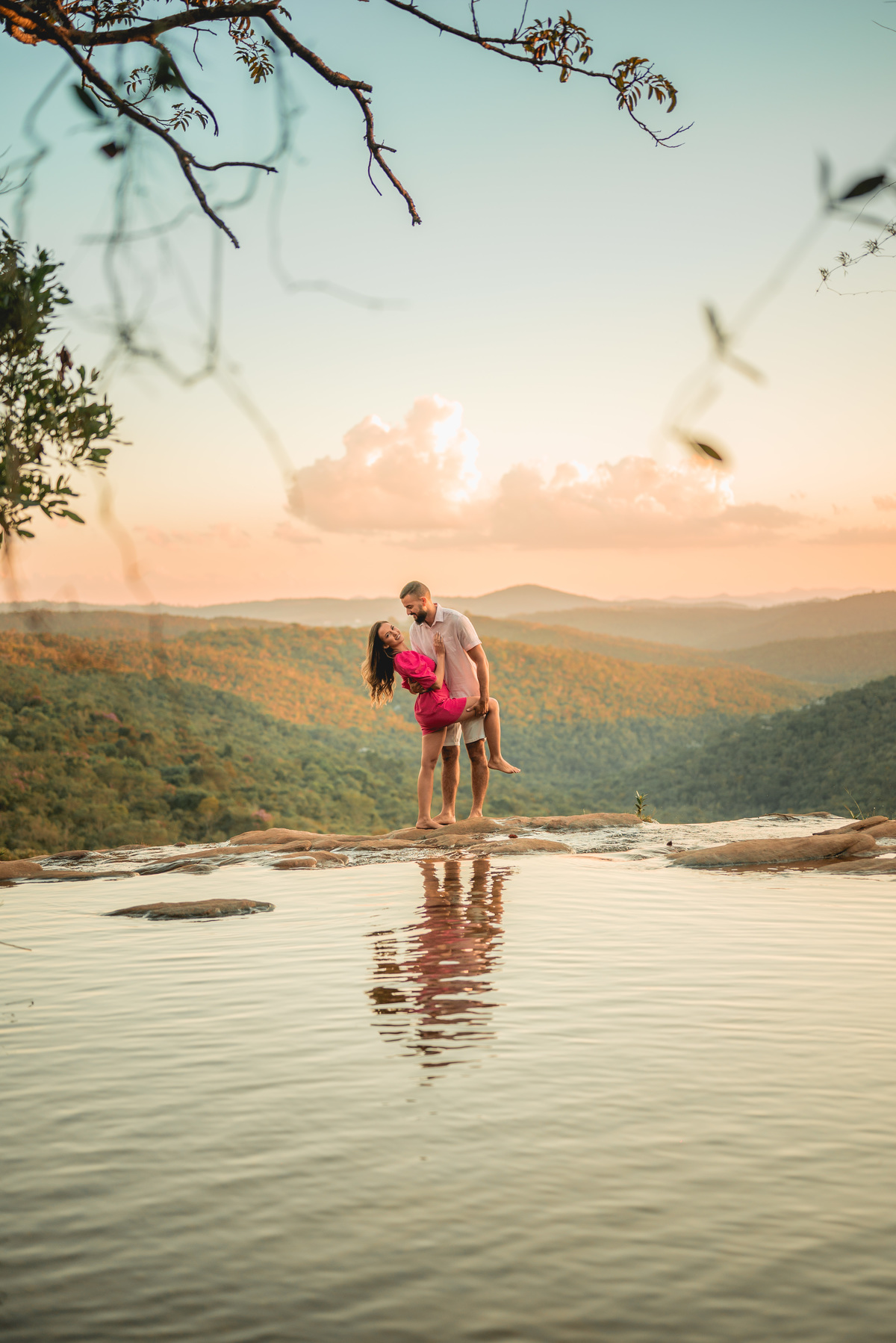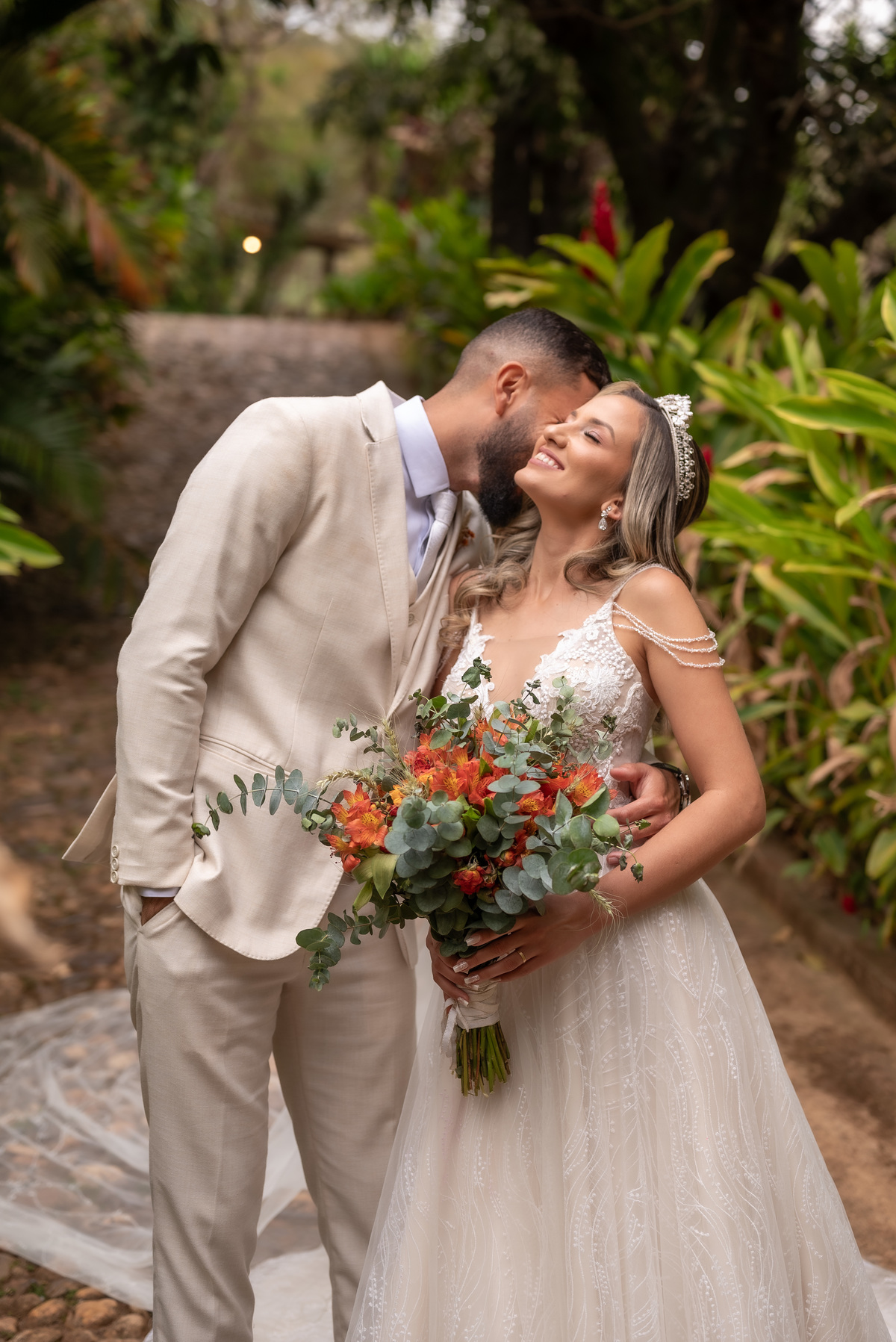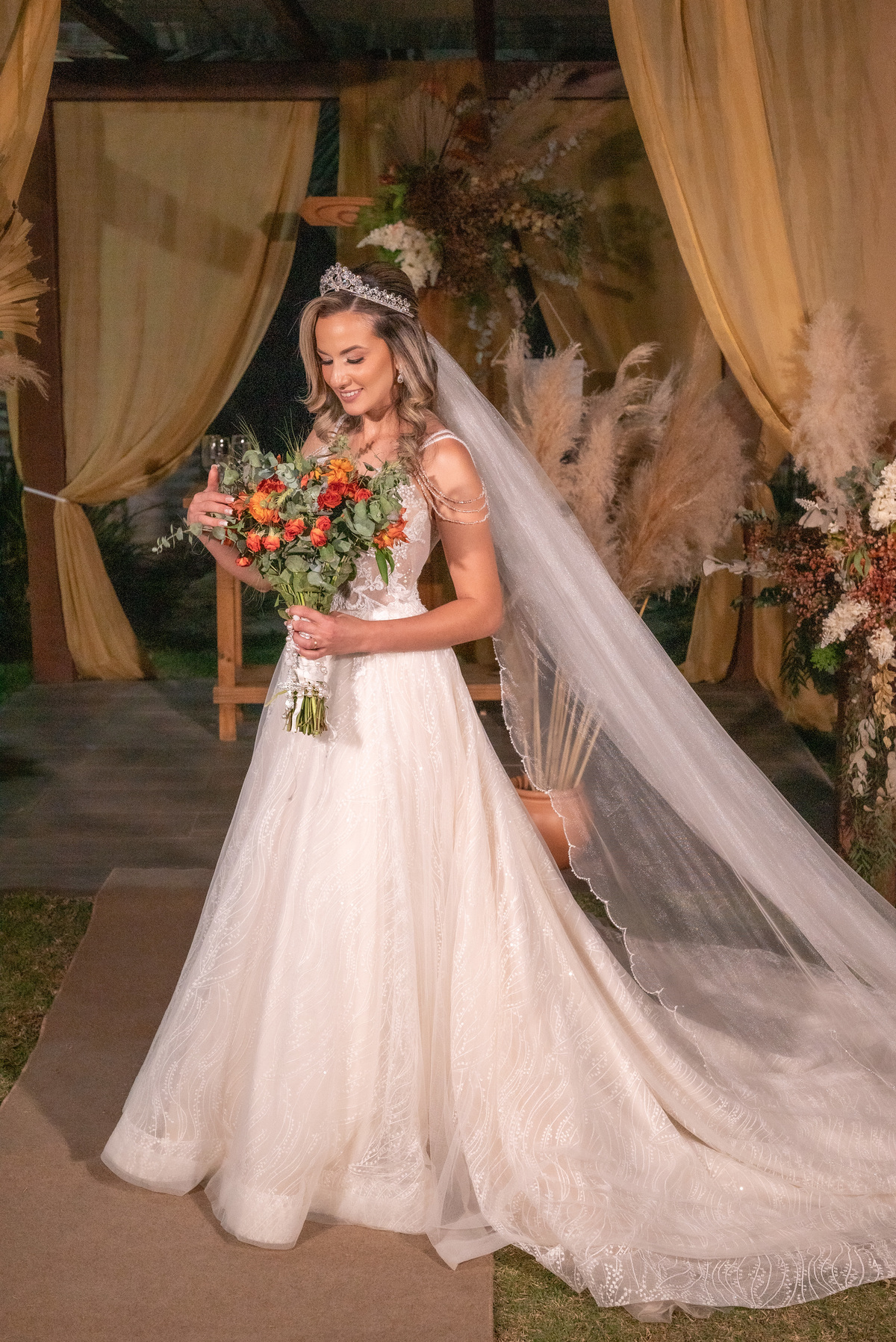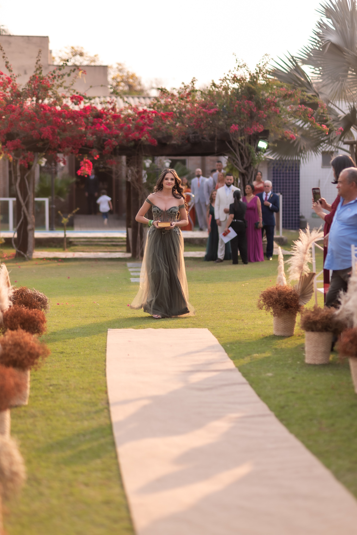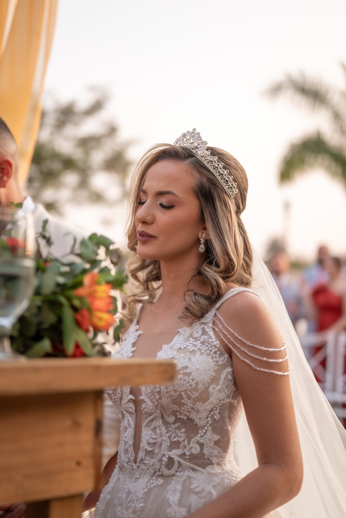 A cerimônia contou com a presença de amigos e familiares, criando um clima de emoção e felicidade do início ao fim. O pôr do sol no Espaço Araújo deu um toque mágico às fotos do casal, que aproveitaram todos os cantinhos do local para registrar esse momento especial.